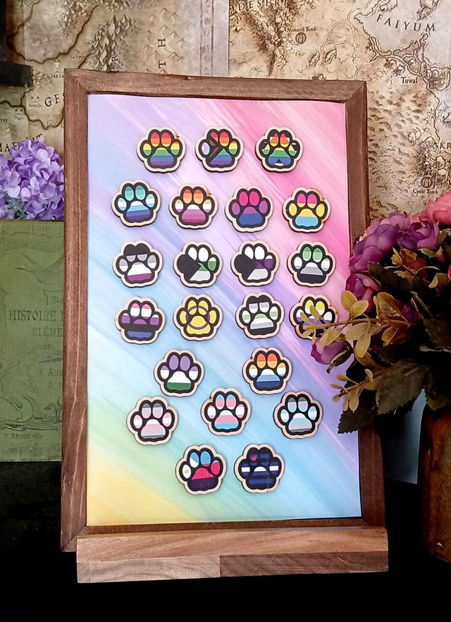 Pin’s en bois motif coussinet de chat aux couleurs des drapeaux de fierté, choisissez la/les votre ! [3cm]