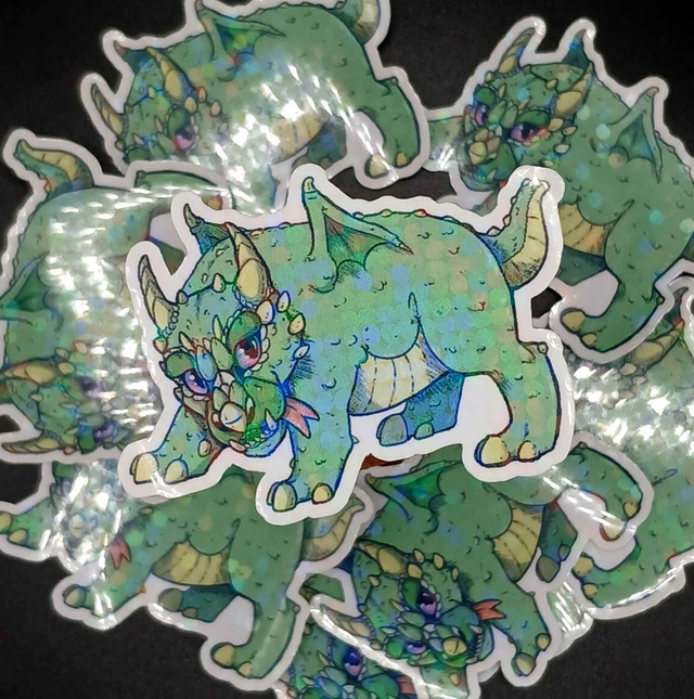 ou "Pomme, le dragon de poche" [Laminage irisé / 6x4.4cm]